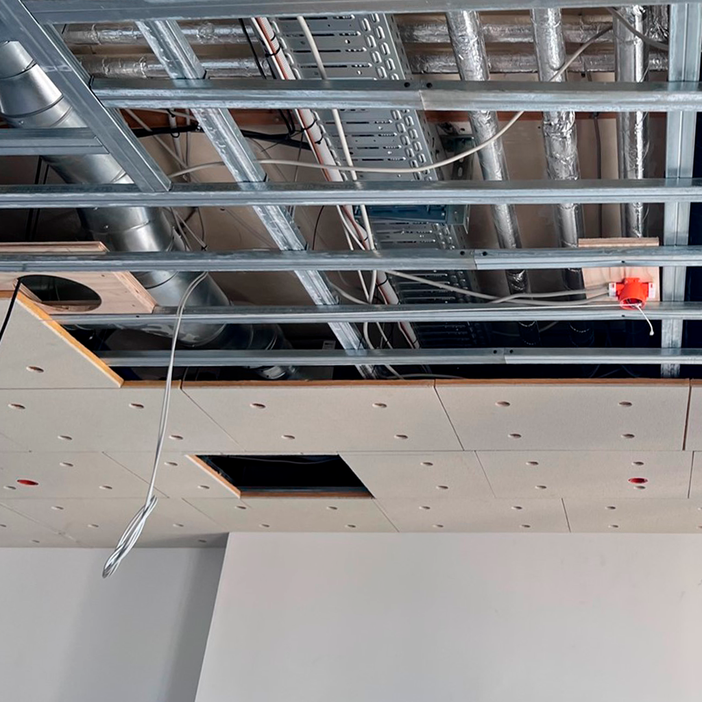 If you are looking for a mechanically fixed acoustic ceiling solution, we are happy to provide advice on system selection and build-up.
