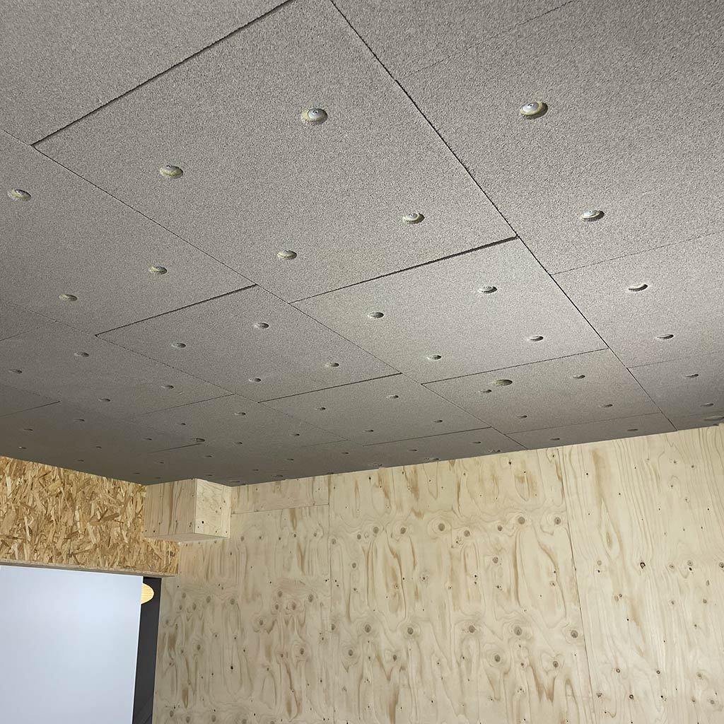 The system is suitable for both new-build and renovation projects where mechanical fixing is required in combination with a seamless ceiling surface. After installation, the panels are finished with Hz Acoustic Plaster, which covers the surface and creates the uniform final expression.