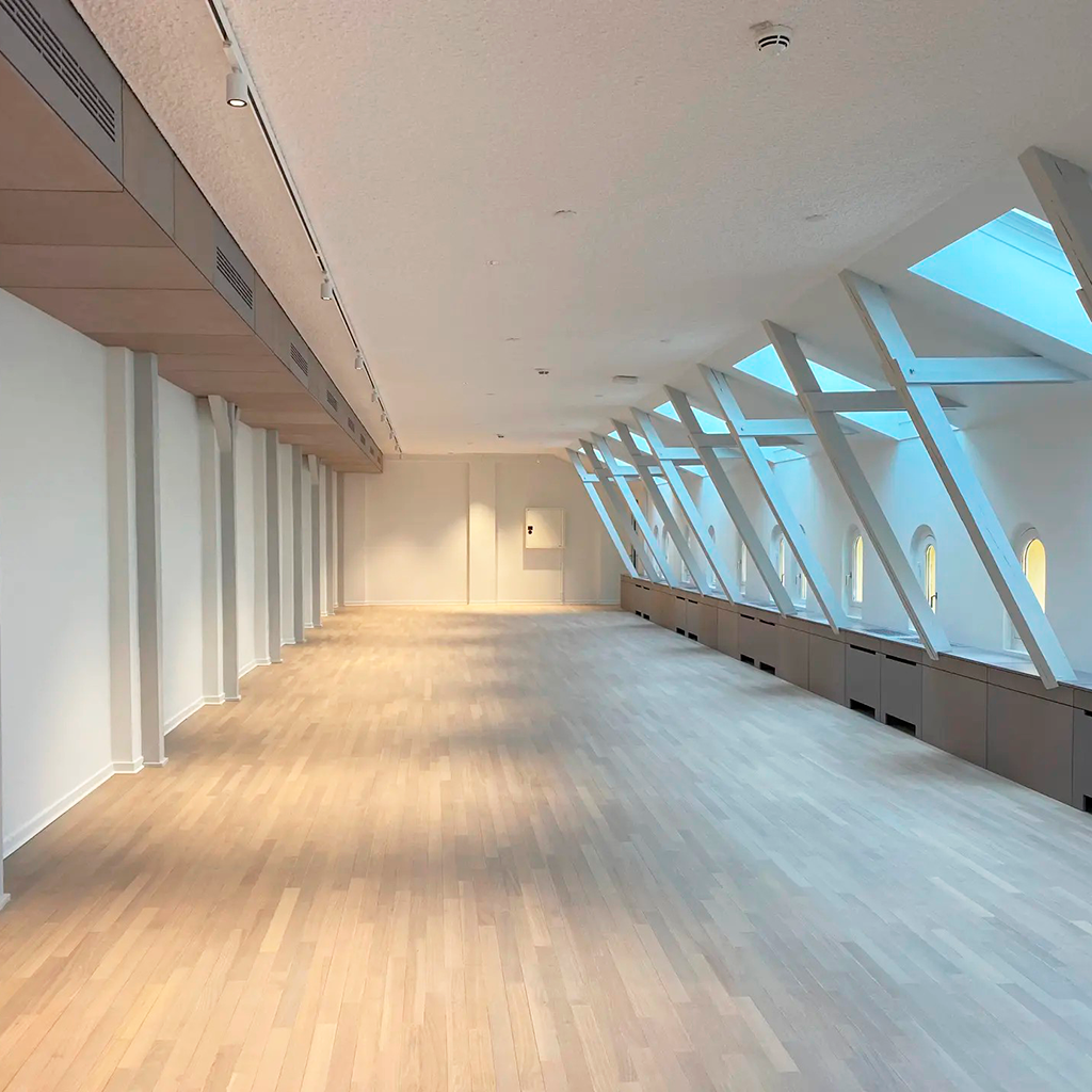 Panels are screwed in place with suitable screws, depending on the substrate. Washers (minimum Ø 18 mm) should be used to prevent screws from sinking into the mineral wool. Anchors can also be used for extra stability. Panels should be installed with the long side aligned with the light direction, ensuring staggered joints for optimal stability.